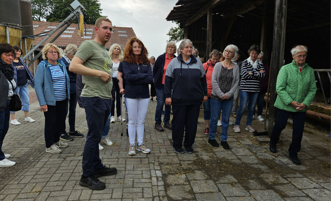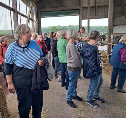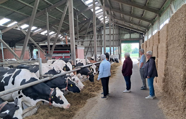 Es begann zunächst mit einer Hofführung. Gerke Albers, der vor einiger Zeit den Hof von seinen Eltern übernommen hatte, führte die Landfrauen durch seinen Betrieb. Er gab dabei viele interessante Einblicke und Informationen über Rinderzucht, Aufzucht von Kälbern, Rindermast und natürlich über seine Milchkühe. Das tägliche arbeitsintensive Melken ist zwar durch 2 Melkroboter einfacher geworden, es bleibt aber trotz allem noch genug zu tun, damit seine fast 300 Tiere sich auch wohlfühlen.